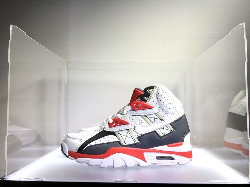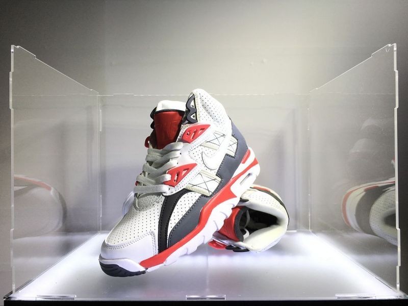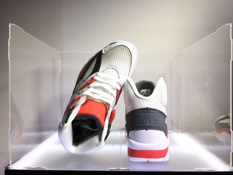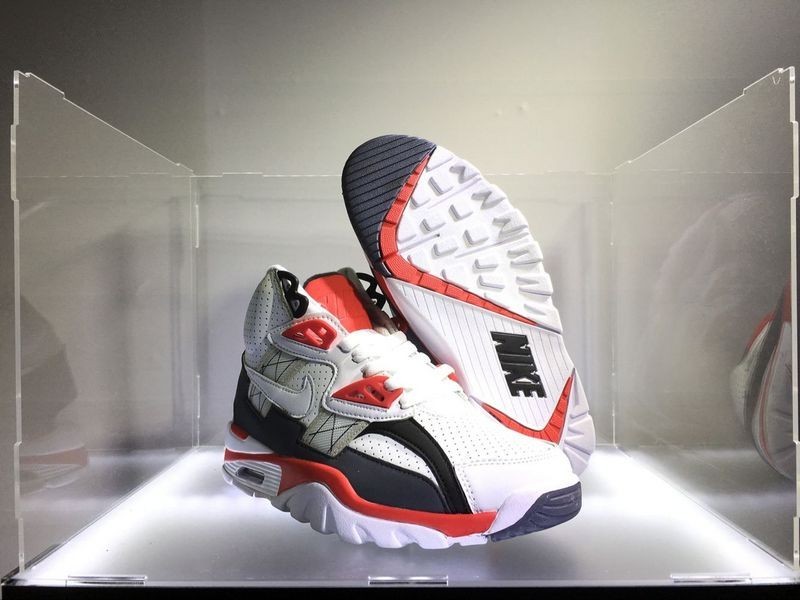 Der Nike Air Trainer ist der erste vielseitige Trainingsschuh von Nike, der 1987 von Tinker Hatfield entworfen wurde. Das Premium-Lederband mit Klettverschluss und Mittelblock bietet dem Träger hervorragenden Fußschutz und Tragekomfort.